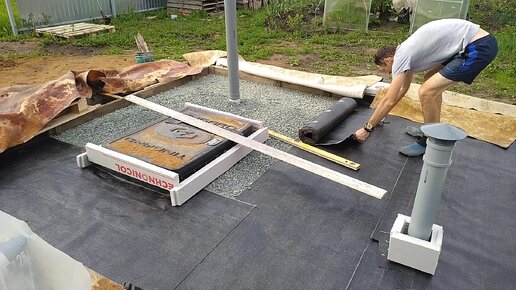 Рискнул уложить гидроизоляцию прямо на щебень без стяжки.