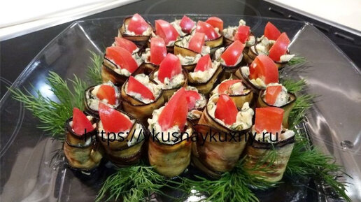 Рулетики из баклажанов с помидорами и сыром косичка