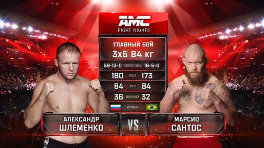 АЛЕКСАНДР ШЛЕМЕНКО vs МАРСИО САНТОС. ГЛАВНЫЙ БОЙ AMC FIGHT NIGHTS