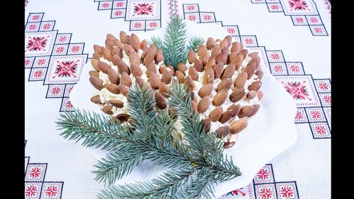 Салат Шишка рецепт Салаты на Новый год Салат Сосновая шишка с миндалем и курицей Сосновые шишки