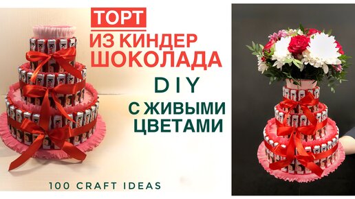 Торт из киндер-шоколада с живыми цветами. Торт из киндеров; самый простой способ сборки. DIY