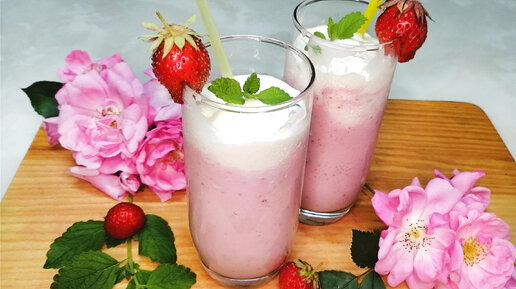 КЛУБНИЧНЫЙ МИЛКШЕЙК С МОРОЖЕНЫМ! ПРОСТО БЛАЖЕНСТВО!