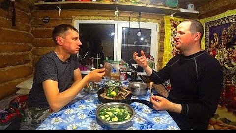 Поход в тайгу. Собираем клюкву на болоте. Ночь в таёжной избе. Готовим ужин на костре.