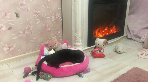 Малыш сладко засыпает у камина