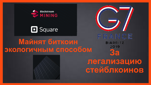 "Зелёный" (экологичный) майнинг с Square и Blockstream | Легализация стейблкоинов G7