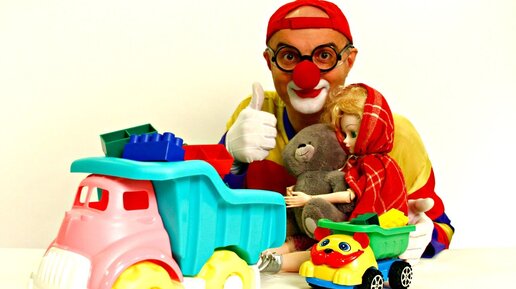 Видео для детей с машинками. Клоун Дима и детали конструктора