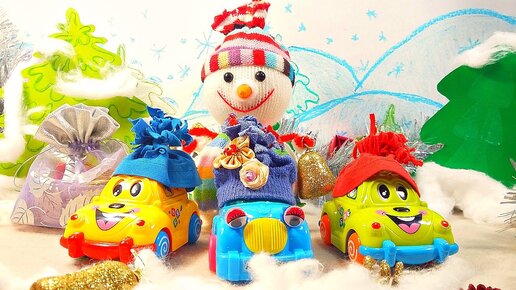 Видео с игрушками. Машинки отгадывают загадки снеговика