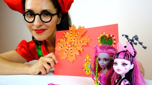 Монстер Хай и клоунесса Куку: аппликация из листьев