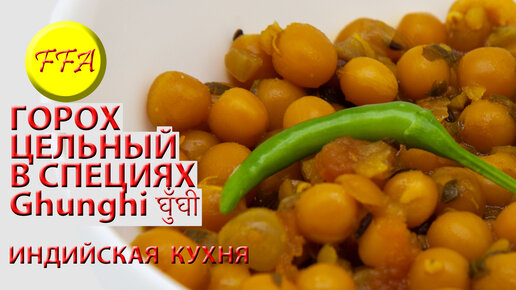 Цельный горох со специями по рецепту из восточной Индии, называется Гхунгхи Ghunghi на хинди घुँघी