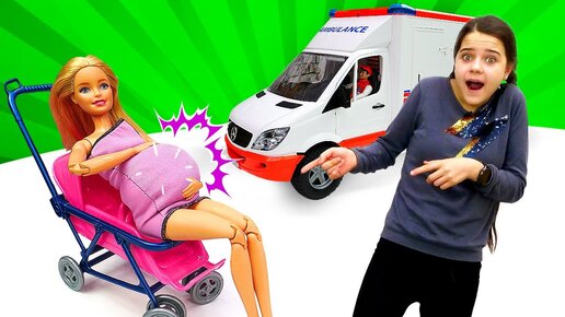 Видео для девочек. Беременная Барби и Кен идут в Салон красоты. Кукле Барби плохо?! Игры в куклы