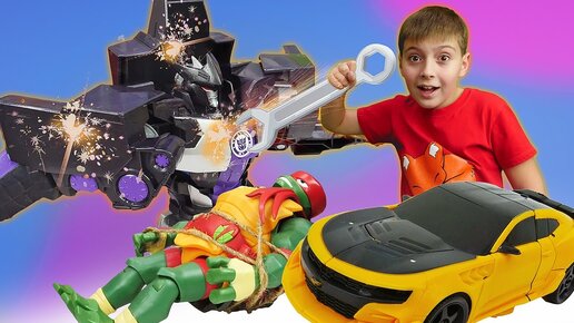 Видео про игрушки: Трансформеры десептиконы заставили починить Мегатрона и связали Черепашку Рафаэля