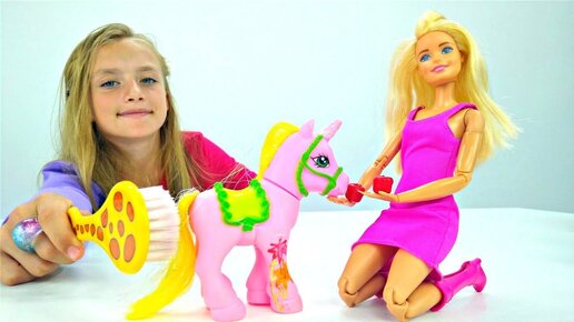 Барби подарили единорога. Мультик с куклами для девочек