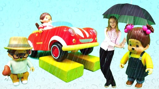 Мультики для малышей. Видео с игрушками. Обезьянки Monchhichi под дождем