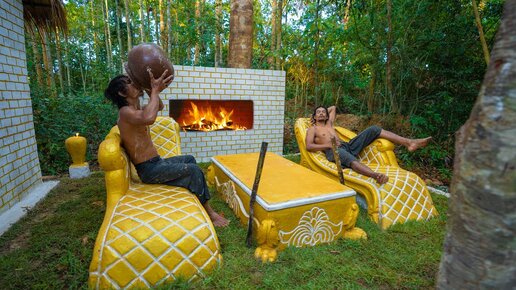 Build the Most Beautiful Out Door Living Room With FirePlace for Thatched Cottage Villa