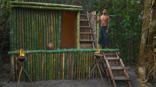 Build incredible Bamboo Mud Villa House in Deep Jungle without tool by Jungle Survival