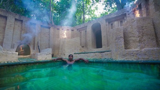 Build Underground Bamboo Jacuzzi for Secret Underground Temple Cabin Shelter by Jungle Survival