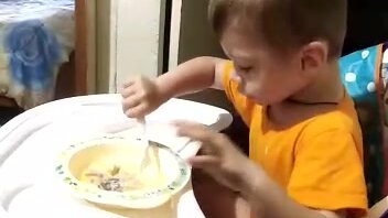 Ребенок учится кушать
