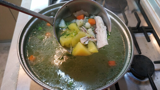 Суп куриный с добавлением зелени и овощей. Вот что получилось?