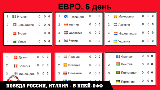 ЕВРО по футболу 2020. 6 день. Результаты, расписание, турниры таблицы.
