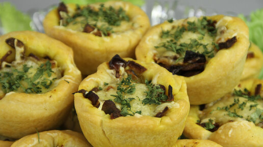 Тарталетки с курицей и грибами. Можно подавать, как горячими, так и холодными