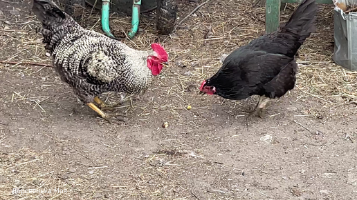 Деловой петух. Утки с курами едят сырой картофель