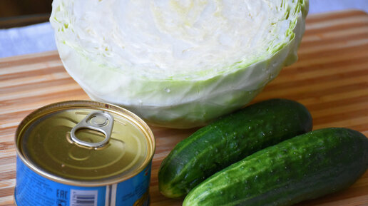 Простой салат с капустой, огурцом и икрой минтая