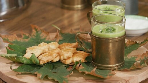 Суп-пюре из лука-порея и горошка с сырным печеньем