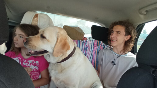 Путешествие с лабрадором и двумя детьми в машине