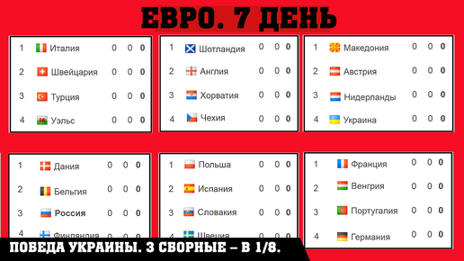 Чемпионата Европы по футболу 2020. 2 тур. Таблицы. Результаты. Расписание. 3 сборные – в 1/8.