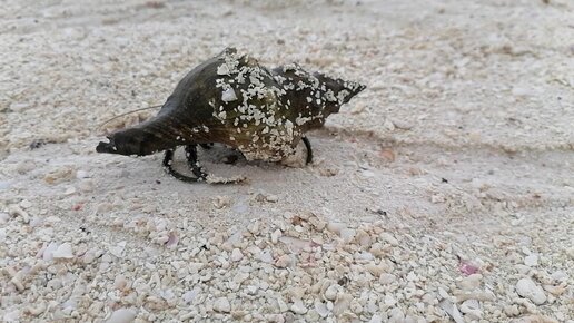 Большой рак-отшельник ползет к Индийскому океану и замирает. Занзибар.