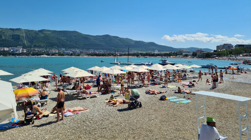 Столпотворение на пляже в Геленджике. Краснодарский край