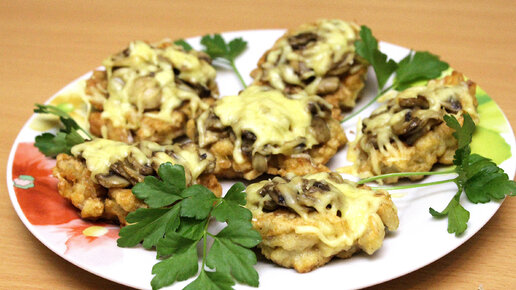 Рыбные котлеты запеченые с грибами под сырной корочкой