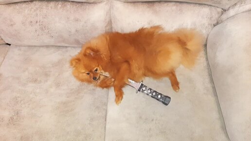 Осторожно! Шпиц играет с ножом, слабонервным не смотреть.