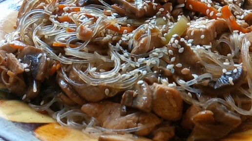 В общем, я тут приготовила фунчозу с курицей, грибами и овощами