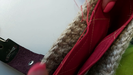 Процесс создания вязаной сумки из джутовой пряжи