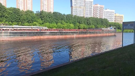 Судовой трафик на канале имени Москвы: баржа и яхта