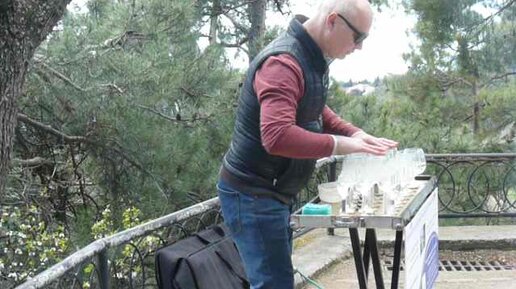 Мужчина играет ...на стаканах,точнее -на бокалах!!!..в Никитском ботаническом саду/Крым.Хрусталь или стекло?- вот в чём вопрос)