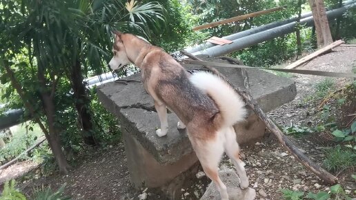 Алиса отправилась на прогулку, как всегда повстречала своих знакомых кошек и обнюхала все кустики