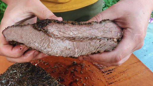 Покажу как приготовить сочный брискет (говяжья грудинка) в угольном гриле.