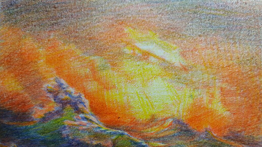 Пейзаж морской "9 вал". Красный, синий, желтый. На красный подмолевок.