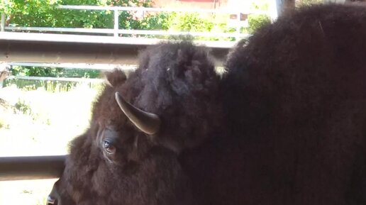 Бизон Милка в перегонке, пока мы чистим вольер