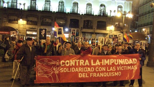 Шествие испанских пенсионеров в осенним вечером в Мадриде.