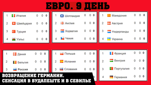 ЕВРО по футболу 2020. 9 день. Результаты, расписание, таблицы.