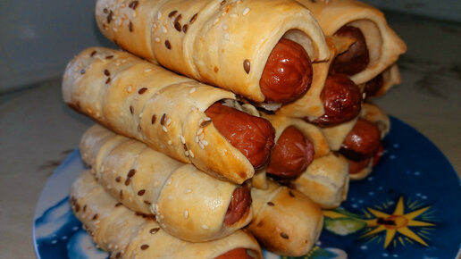 ЕСЛИ У ВАС ЕСТЬ СЛОЕНОЕ ТЕСТО ПРИТОВЬТЕ НА ЗАВТРАК СОСИСКИ В ТЕСТЕ