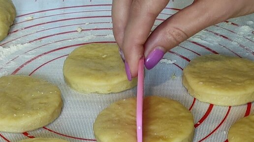 Беру расческу и делаю чудненькие изделия из теста. Выглядят как курабье, только вкус другой