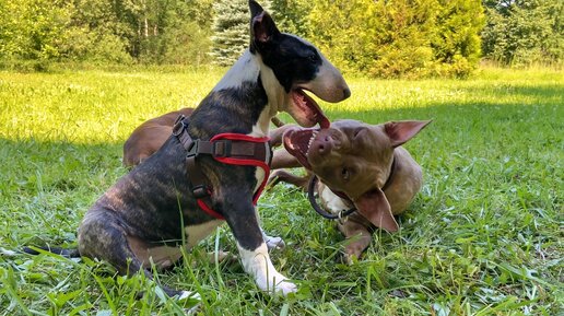 Щенок Бультерьера 3 месяца против щенка Питбуля 8 месяцев