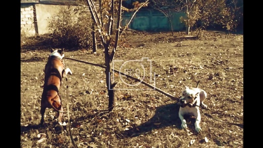 Питбули развлекаются с палочкой, ни то качели, ни то коромысло из питов