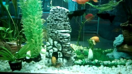 Улитки Спикси и ампулярии отложили икру;) Кормлю анциструсов огурцами и салатом., Просто обзор моих аквариумов)
