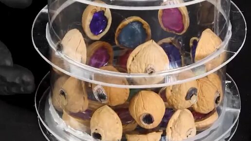 Сделайте красочный ночник из дерева и скорлупы грецкого ореха.
