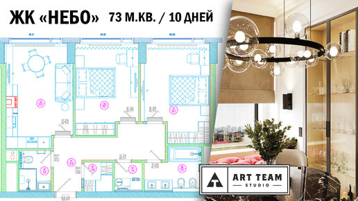 ЖК "Небо". Обзор проекта выполняемого за 10 дней. Квартира с 3 окнами, 73 м.кв. "АртТим"